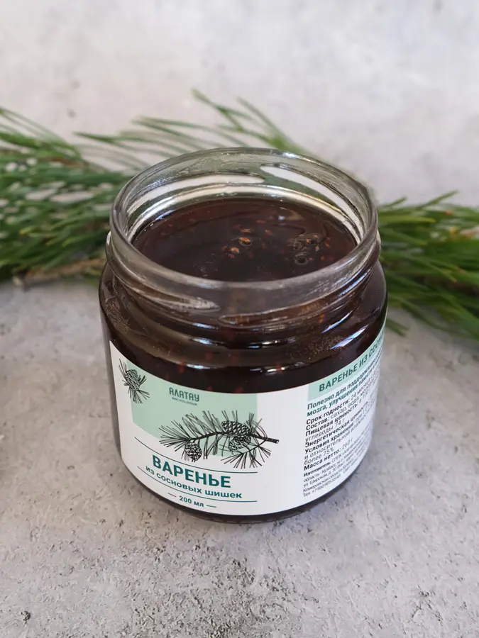 варенье из сосновых шишек 200 мл - 1 шт; кедровые орехи в сосновом сиропе 100 мл - 1 шт; мармеладный медведь с кедровыми орехами 90 гр - 1 шт; мармеладная ёлочка с сосновыми шишками 90 гр - 1 шт; пихтовый чай 20 пак. по 2 гр - 1 шт; пастила сосновая 45 гр - 1 шт; цукаты из сосновых шишек на шпажке 25 гр - 1 шт.