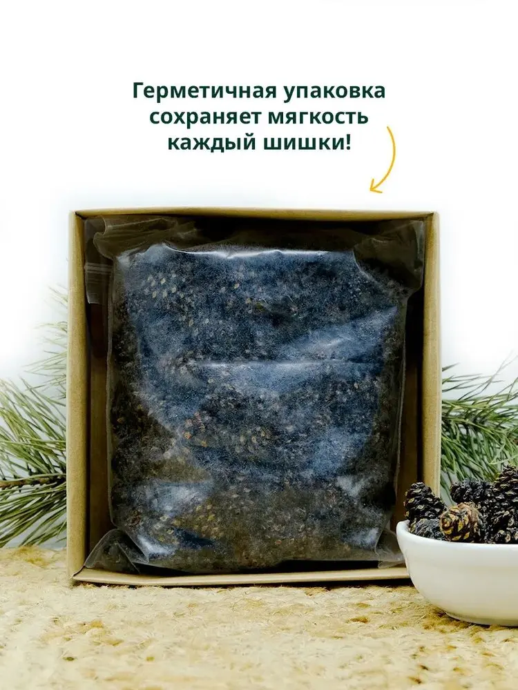 Молодые шишечки перебирают вручную - каждая не более 2,5 см. После их вываривают в густом и сладком сиропе. Для разжевывания не нужно прилагать усилий. Каждый цукат просто тает во рту, даря легкое смолистое послевкусие. Наши технологи добились баланса сладости и хвойной терпкости, сохранили ароматы первозданной дикой природы и максимум полезных свойств.